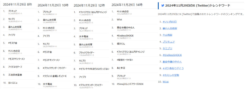 #いい肉の日の投稿が多かった事や、準備をしている企業よりトレンドに入ったことを確認してその場で考えて投稿する企業が多かった可能性が高いです。