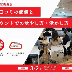 3月2日(月)19時スタートで企業の公式SNS担当者向け勉強会&交流会を開催予定です。
