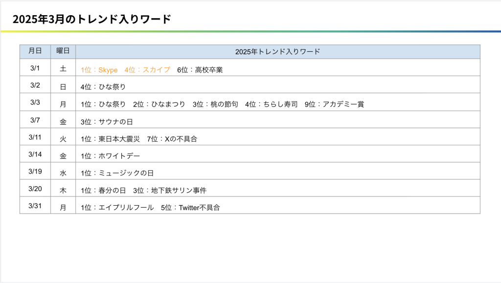 続いて、昨年2025年3月のトレンドワードを紹介します👀