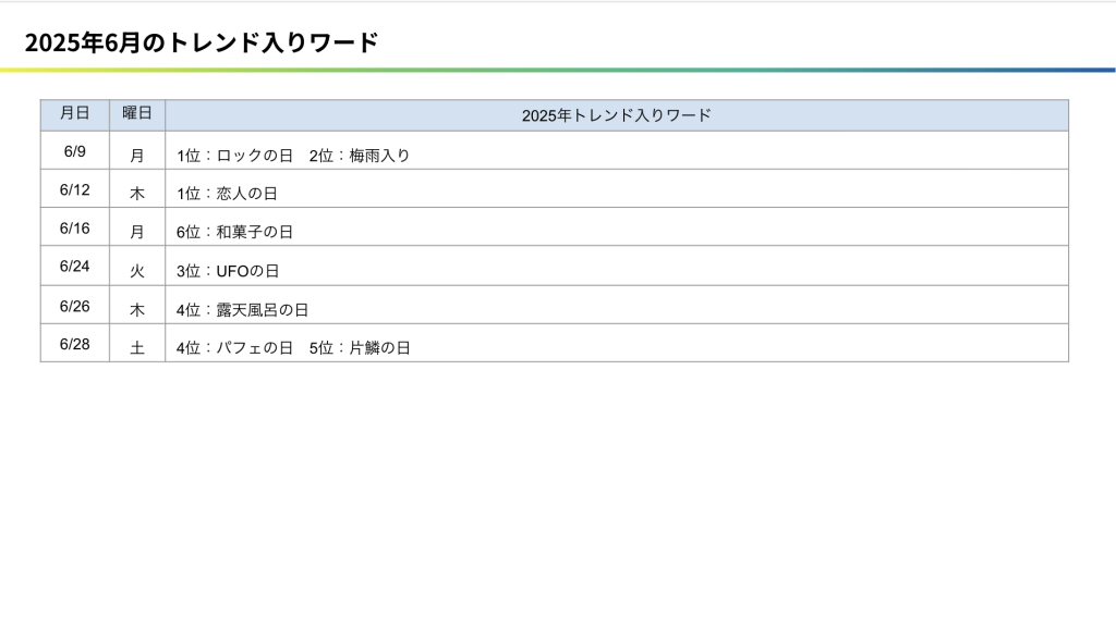 続いて、昨年2025年6月のトレンドワードを紹介します。