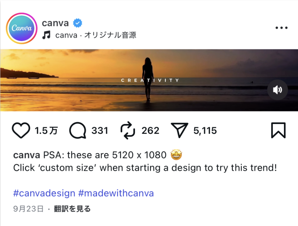 タイムラインではそのまま横長で表示されるため、他の投稿と差別化でき、目を惹く表現ができそうです😊