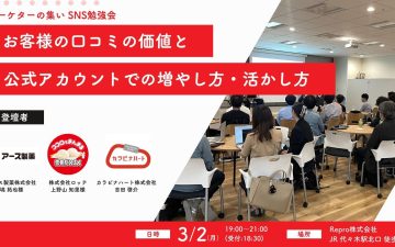 マーケターの集い勉強会&交流会のご案内「お客様のクチコミ価値と公式アカウントでの増やし方・活かし方」…