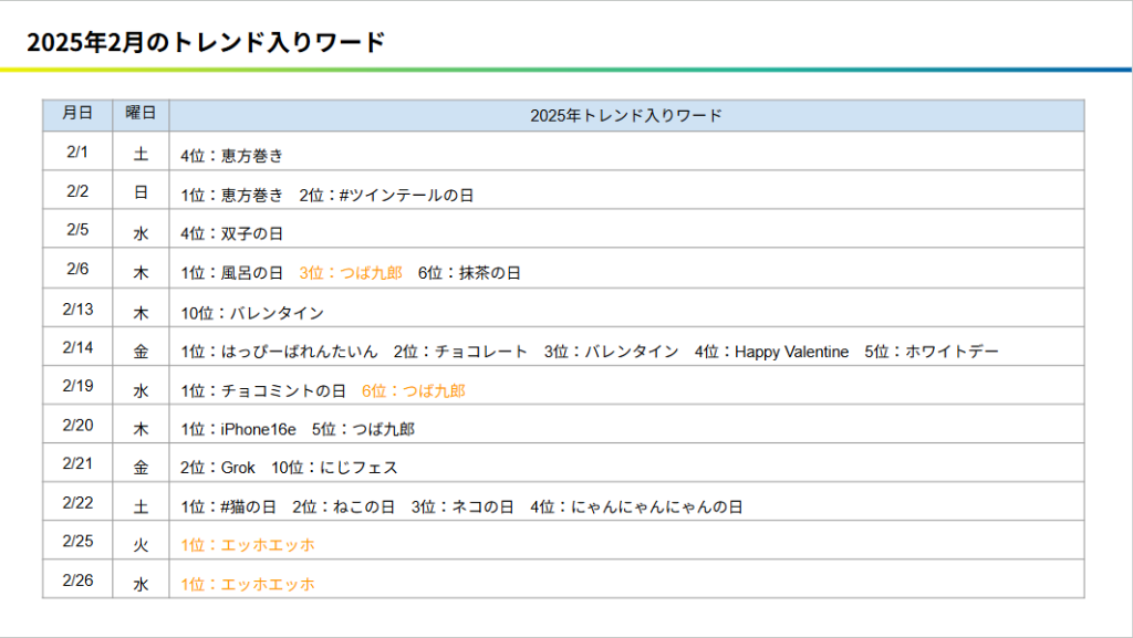 続いて、昨年2025年2月のトレンドワードを紹介します👀