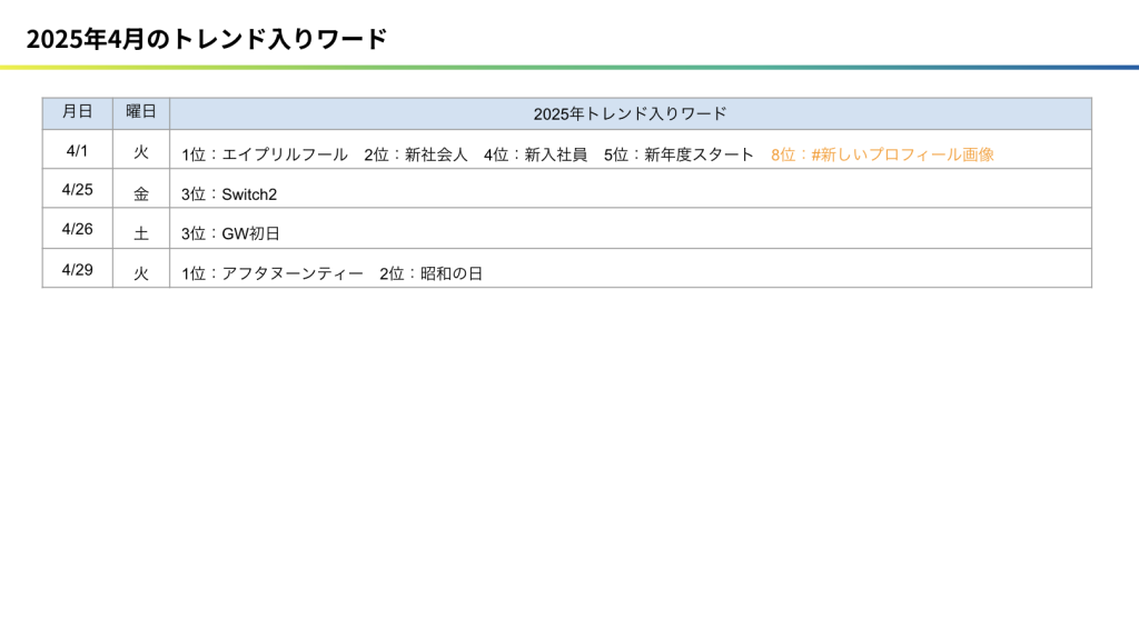 続いて、昨年2025年4月のトレンドワードを紹介します。